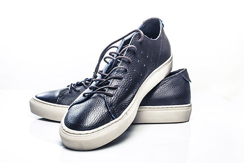 Low-top brushed leather sneakers in blue. Round toe. Tonal lace-up closure. Discrete Logo stamp in blue-tone at tongue and padded heel collar. Knot accents at heel. Rubber sole in white. Tonal stitching. Upper: leather.