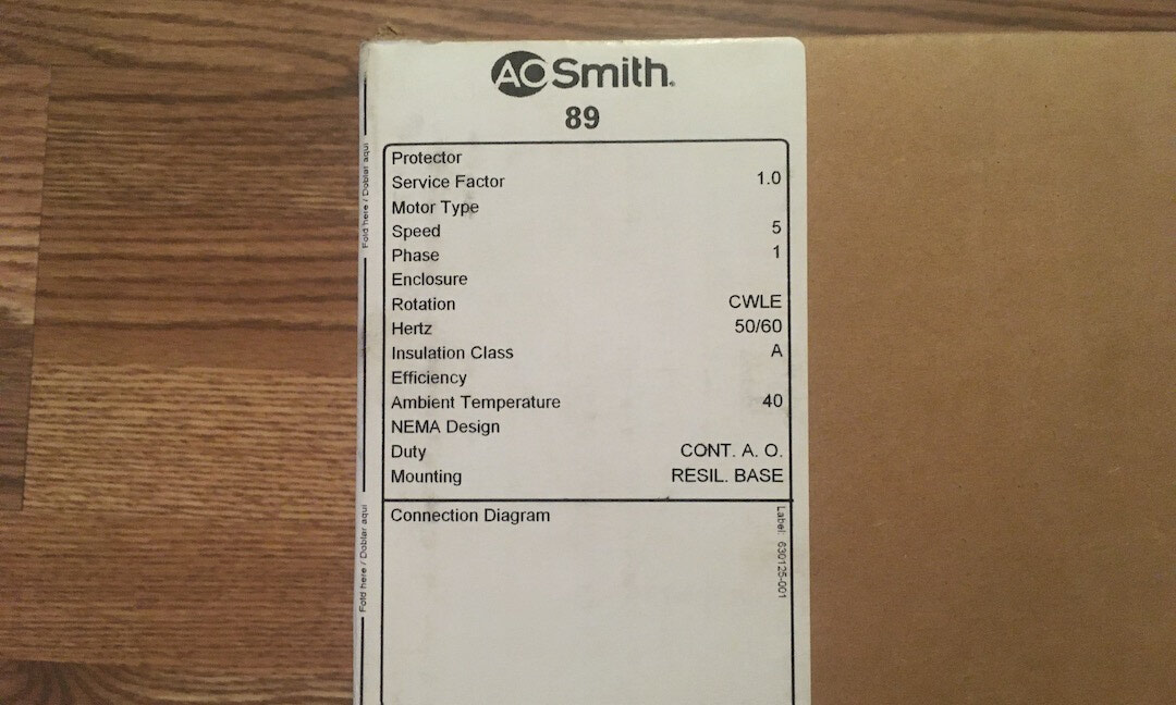 AO Smith 89 4MA19 5-Inch Diameter Double Shaft Motor 1/10 1/10-1/20-1/30-1/40-1/70