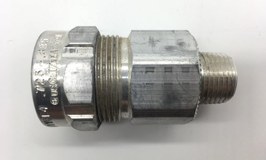 ST050-465 Star Teck connector. Aluminum jacketed cable fitting. Hub size 1/2 inch. Range over jacket 0.725 - 0.885 inches.