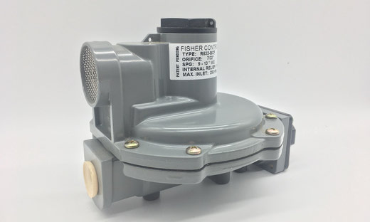 The R632-BCF Integral Two-Stage LP-Gas Regulator combines a first-stage regulator and a second-stage regulator into one compact unit for residential LP-gas systems up to 950,000 BTU/hr.